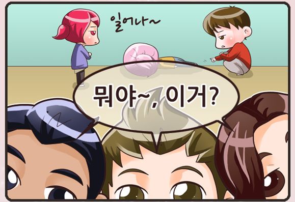三人: 什麼阿,這個? 뭐야~, 이거?