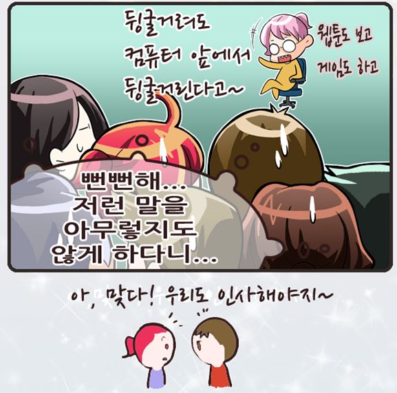 뒹굴거려도 컴퓨터 앞에서 뒹굴거린다고~ 웹툰도 보고 게임도 하고